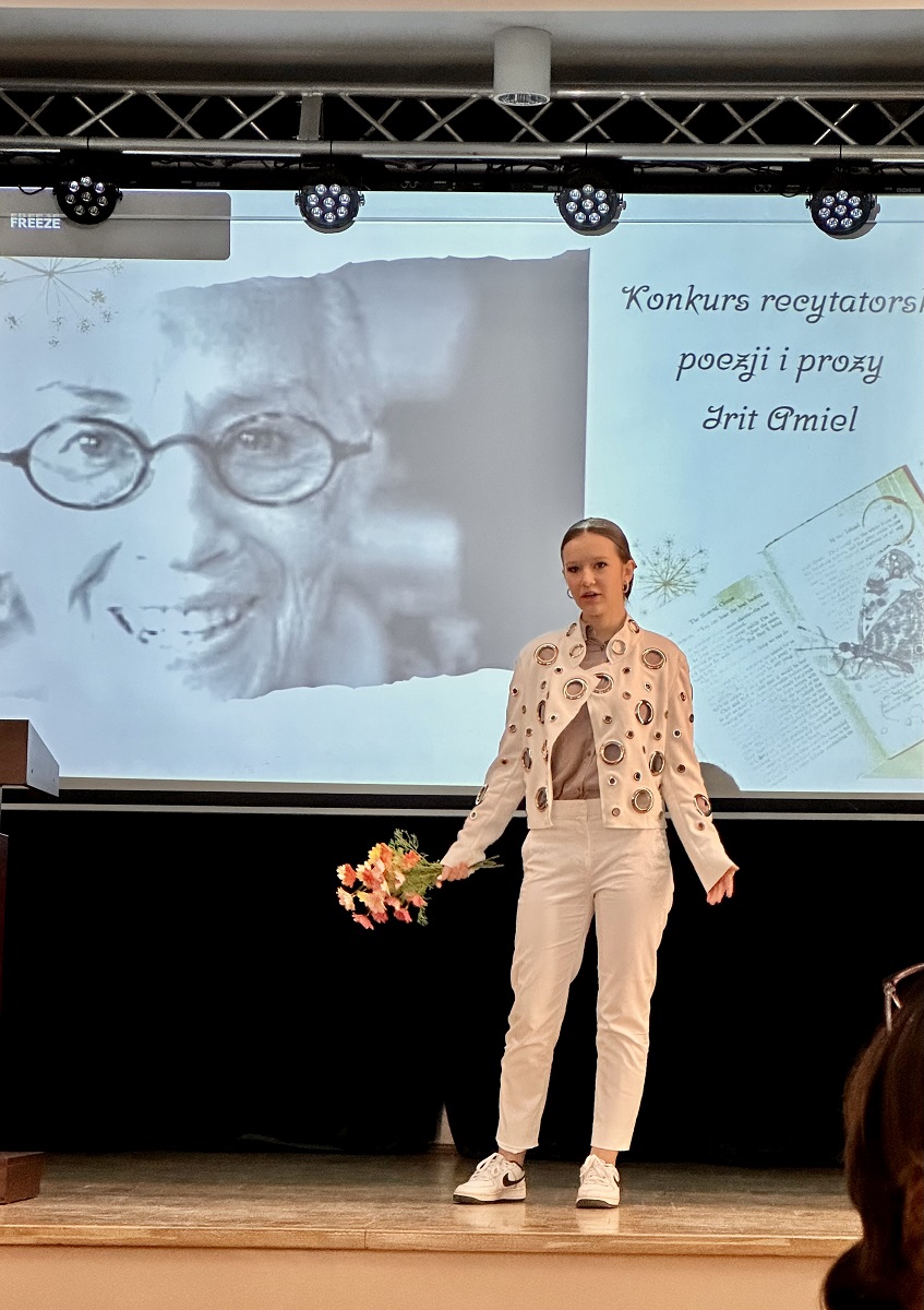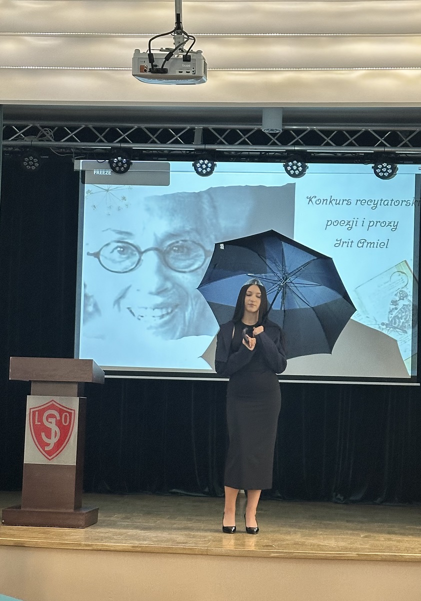 W piątek, 20 marca, uczennice klasy 3 d wzięły udział w Konkursie Recytatorskim Poezji i Prozy Irit Amiel, w ramach projektu edukacyjnego „Most do wczorajszego świata”. Organizatorami konkursu byli: Wydział Edukacji Urzędu Miasta Częstochowy, I Liceum im. Juliusza Słowackiego w Częstochowie, Towarzystwo Społeczno-Kulturalne Żydów w Polsce, Oddział w Częstochowie i Regionalny Ośrodek Kultury w Częstochowie.Uczennice pod opieką p. Doroty Karońskiej: Nikola Kula, Kamila Pala i Julia Benduch zaprezentowały opowiadania z tomu „Osmaleni” – „Linka” i „Daniel”oraz wiersz „Planetka”.Konkurs słowem wstępnym otworzył dyrektor I LO im. J. Słowackiego – mgr Tomasz Szczygłowski, w jury zasiadły panie: Ewa Oleś – sekretarz literacki Teatru im. Adama Mickiewicza w Częstochowie, Izabela Sobańska-Klekowska -przewodnicząca TSKŻ oddziału w Częstochowie i Ilona Kowalska z BibliotekiPublicznej w Częstochowie. Czekając na wyniki konkursu, gratulujemy występów naszym uczennicom.