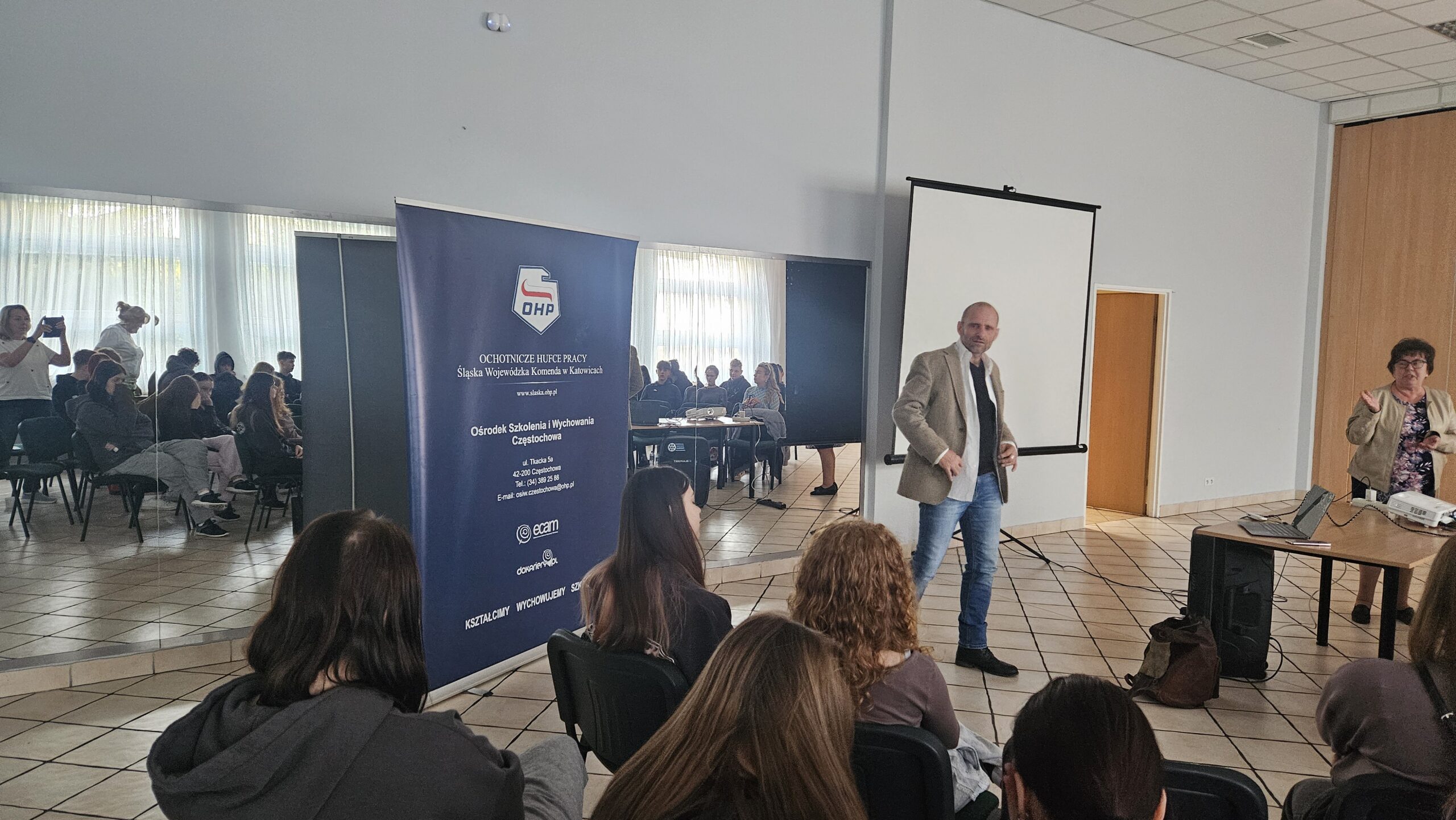 Uczniowie klasy 1m wraz z wychowawcą p. Iwoną Radzioch w dniu 19.0.2026r gościli w Środowiskowym Hufcu Pracy w Częstochowie przy ulicy Tkackiej. Brali oni udział w spotkaniu z podróżnikiem, filmowcem i religioznawcą p. Mariuszem Kurcem.
